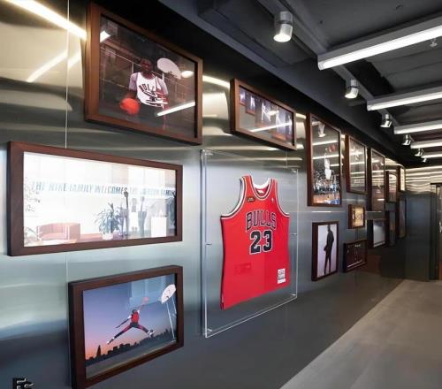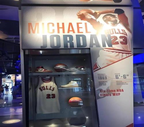 其他進(jìn)名人堂的球員只有一小塊掛在墻上的地方簡(jiǎn)要介紹,而喬丹科比擁有獨(dú)立的展廳全方位的展示,幾十平米的大房間,這待遇區(qū)別不是一般的大!看看下邊這些圖你就知道區(qū)別有多大了。