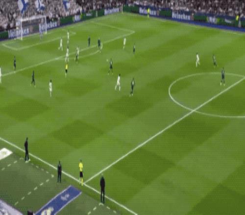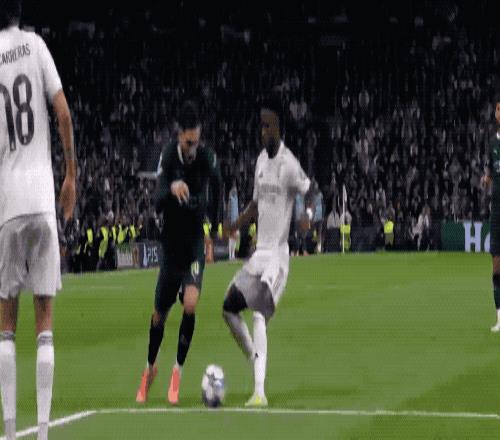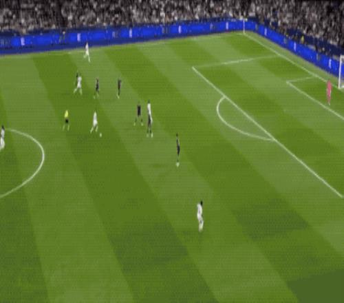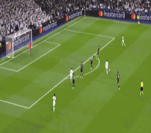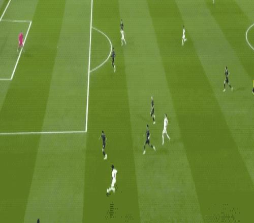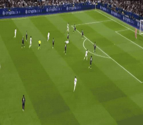 第50分鐘,維尼修斯傳中,羅德里戈假射真傳,貝林厄姆的挑射,稍稍高出。