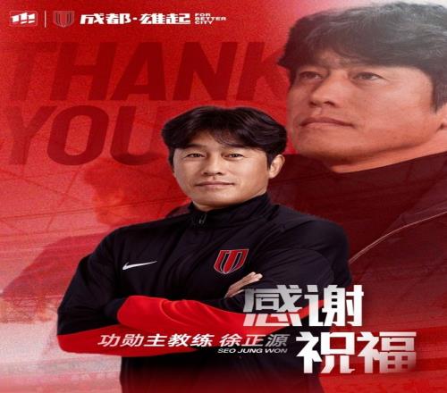 北京時間12月18日,成都蓉城俱樂部官方宣布,經友好協商,俱樂部與徐正源達成一致,決定不再續約。55歲的徐正源將不再擔任成都蓉城足球俱樂部一線隊主教練職務。在此,俱樂部全體成員謹向徐正源先生及其教練團隊致以最誠摯的謝意。