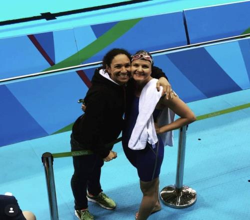 2016年里約熱內(nèi)盧奧運(yùn)會女子200米仰泳決賽后,考文垂與布拉金擁抱。(圖/Instagram考文垂賬戶)