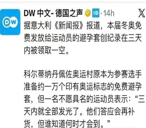 米蘭冬奧會(huì)剛開賽三天,據(jù)說組委會(huì)準(zhǔn)備的一萬只避孕套就被一掃而空,這速度直接刷新了奧運(yùn)紀(jì)錄,讓網(wǎng)友直呼年輕運(yùn)動(dòng)員的荷爾蒙太旺盛了,可以想象組委會(huì)都汗流浹背了!