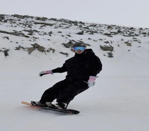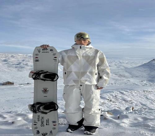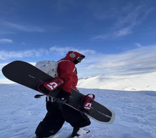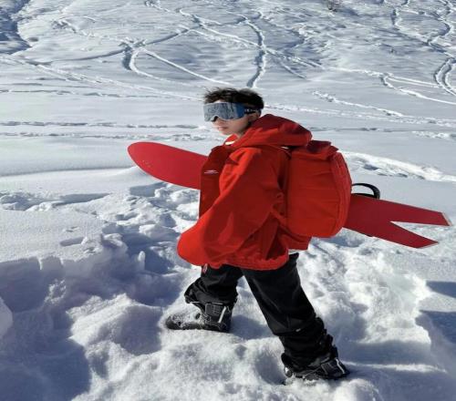 茫茫雪場里中的 “一點紅”,熱烈如火,在純白天地間肆意生長,青春本就該自在馳騁、大膽耀眼。