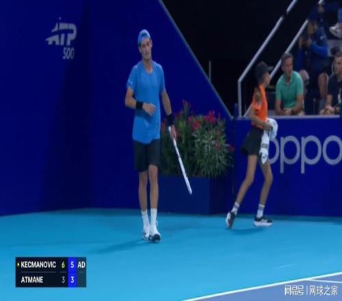 接發球的阿特馬內以15-40落后,在挽救了2個賽點后兩度將比分推進到局末平分deuce。凱茲曼諾維奇拿到第4個賽點時,他做好了發球準備,但阿特馬內動作緩慢,遲遲沒有做好接發球準備。