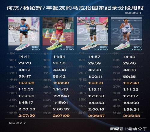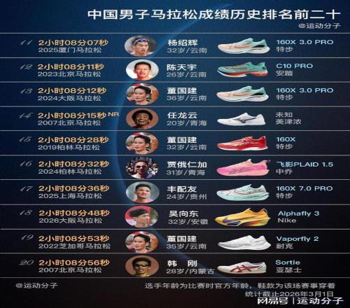 ——何杰、豐配友、楊紹輝、吳向東、陳天宇、董國建、賈俄仁加這些現役選手都趕上了超級跑鞋時代,成績也都由碳板競速鞋創造。