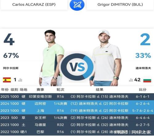 明天早晨六點半,印第安維爾斯大師賽第二輪,首輪輪空的世界第一、西班牙全能戰士阿爾卡拉斯亮相,對陣世界排名42位的保加利亞老帥哥迪米特洛夫。豆粉希望,這場兩人職業生涯的第七次交鋒,會是一場激烈的對決。然而,自去年以來戰績每況愈下、處于退役邊緣的迪米特洛夫,真的還能給2023和2024年連續兩屆賽會冠軍阿爾卡拉斯,制造什么麻煩嗎?