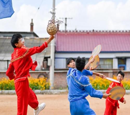 吉林省吉林市烏拉街滿族中學(xué)學(xué)生在比賽中接住珍珠球得分。 新華社記者 顏麟蘊(yùn) 攝