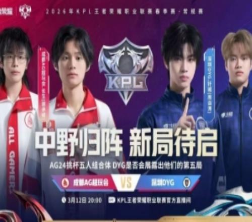 體育資訊3月12日稱 2026KPL春季賽本場(chǎng)比賽是由成都AG超玩會(huì)對(duì)陣到深圳DYG!面對(duì)核心中野回歸的AG,DYG能否拿下強(qiáng)敵!
