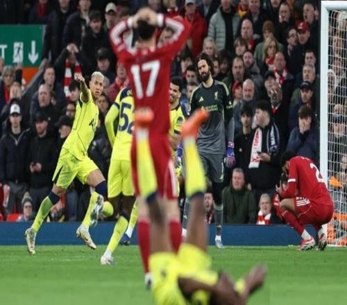 第36分鐘,加克波的遠射被門將撲了一下后擊中門柱彈出,熱刺逃過一劫。第43分鐘,范戴克橫傳門前可惜無人包抄。而在上半場最后時刻,里沙利松連續射門造險,但與得分擦肩而過。半場結束,利物浦主場1-0領先。