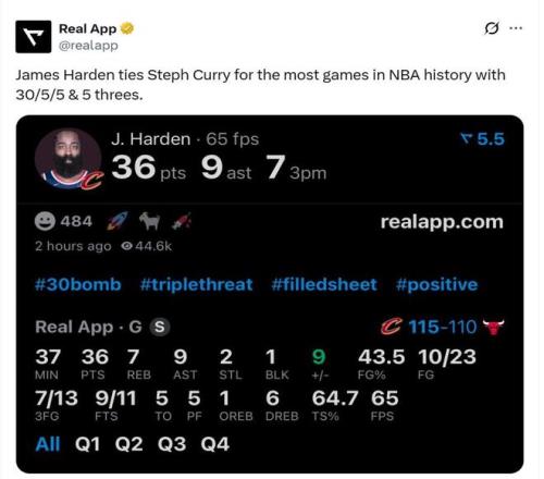 拒絕29分逆轉!哈登36+7+9+7記3分創NBA歷史第1神跡,還刷爆紀錄,騎士險勝公牛!