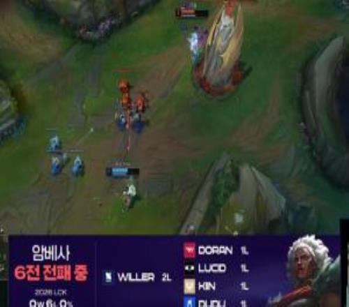 導(dǎo)播給出的消息,LCK本賽段6選狼母,目前勝率還是0%。