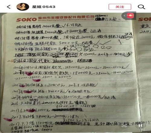 陳星伊(“星姐”)在短視頻平臺上曬出早年賬本