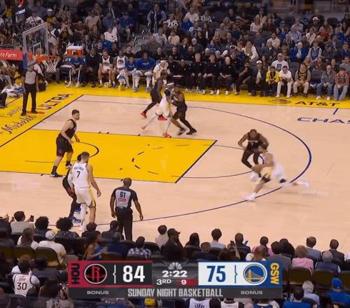 勇士打火箭這場,庫里給杜蘭特上了一堂"預判課"。第二節一次快攻,庫里持球推進,KD退防時左腳試探性前伸——他賭庫里會像往常一樣,運兩步撤到三分線外。