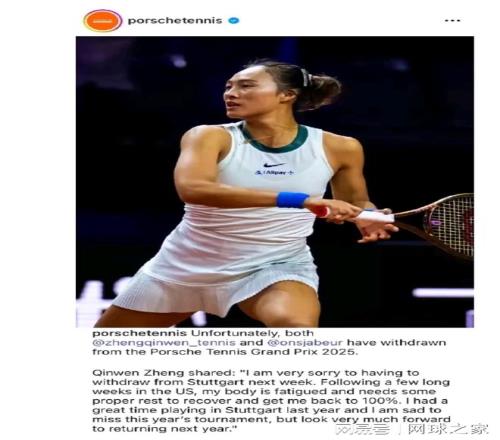 “非常遺憾我不得不退出下周斯圖加特站的比賽。在美國度過了漫長的幾周后,我的身體已感到非常疲憊,需要適當的休息來恢復100%的狀態,以便讓自己重回最佳水平。去年在斯圖加特的參賽經歷很愉快,因此錯過今年的賽事讓我深感遺憾,但非常期待明年能重返這項賽事?!碑敃r看到鄭欽文的這段回應,很多人特別高興,迅速讓她紅土賽季可能會提前報銷的擔心消除了。