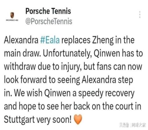可是,在斯圖加特賽事即將開始之際,鄭欽文卻突然退賽,可想而知外界的反應如何了。特別是斯圖加特官方在宣布鄭欽文退賽一事,刻意強調“傷病”這個詞,更讓外界對鄭欽文的擔心如天雷滾滾般涌來,迅速將她送上了熱搜。