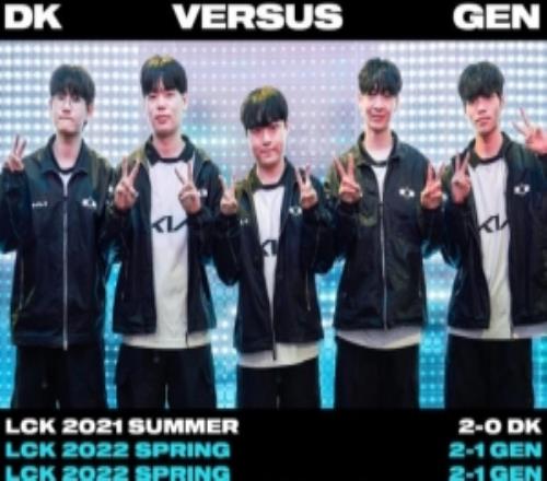 賽事官方分享DK兩次擊敗GEN之間歷次戰績,配文如下: